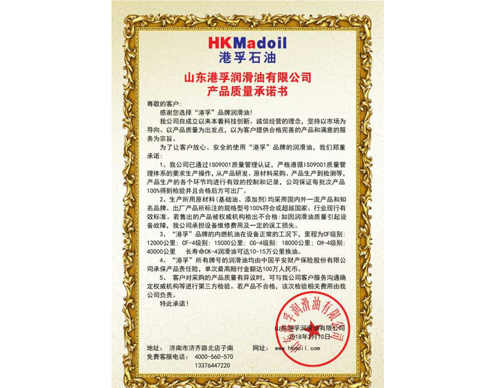 港孚產品質量承諾書 |